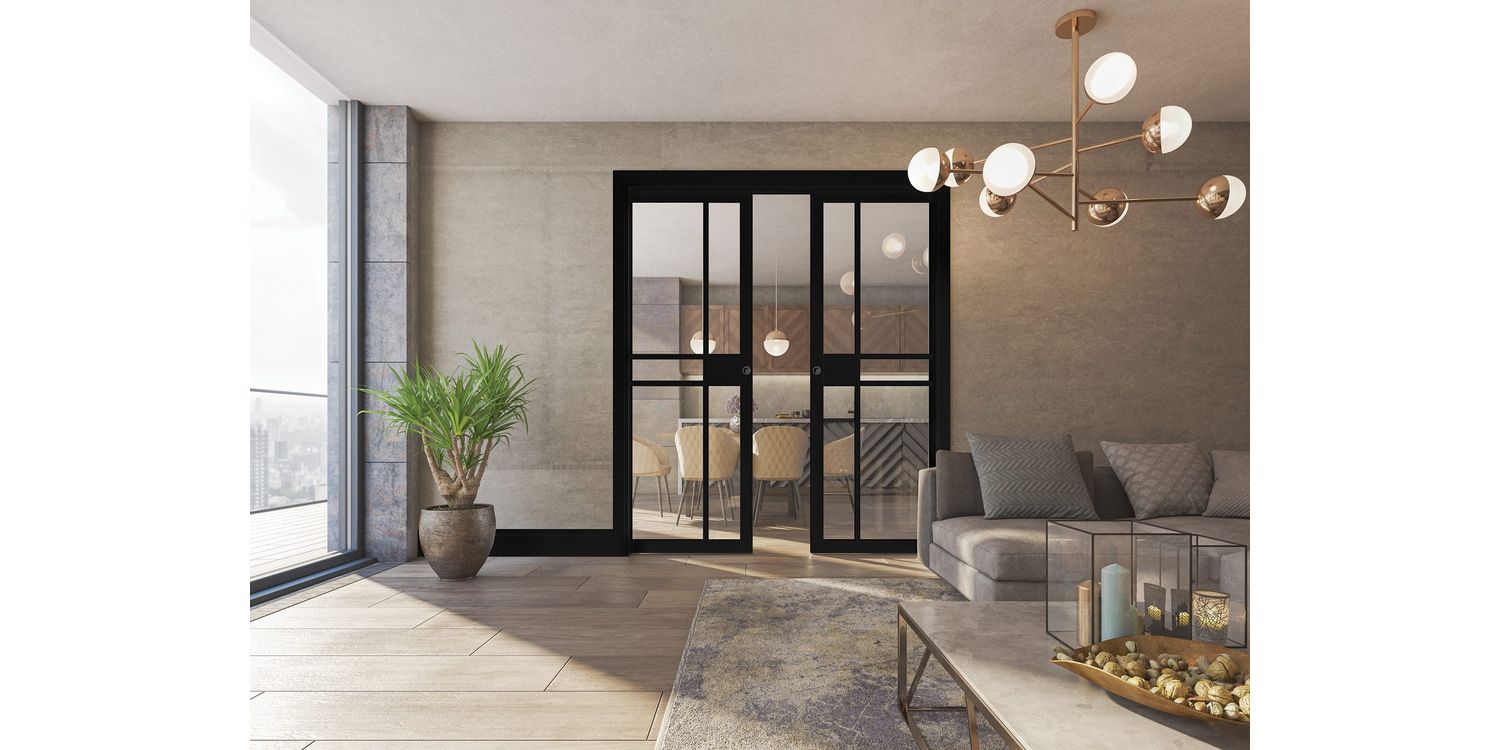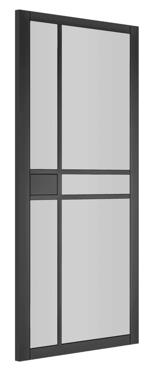 The Deanta Dalston Pre-Finished Black 5 Light Glazed Internal Door is a smart, modern and minimalist glazed interior door to bring plenty of light and contemporary style into your home or office space. Supplied fully finished and ready to install, the Dalston consists of simple, straight lines with an urban industrial, rustic-meets-modern twist to elevate any house or apartment.