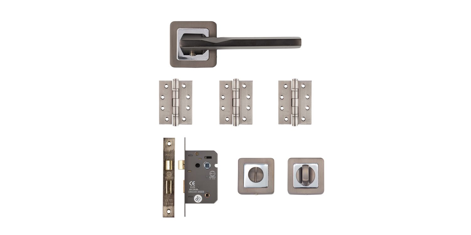 Deanta Hadrian Matt Satin Black Bathroom Door Handle Kit