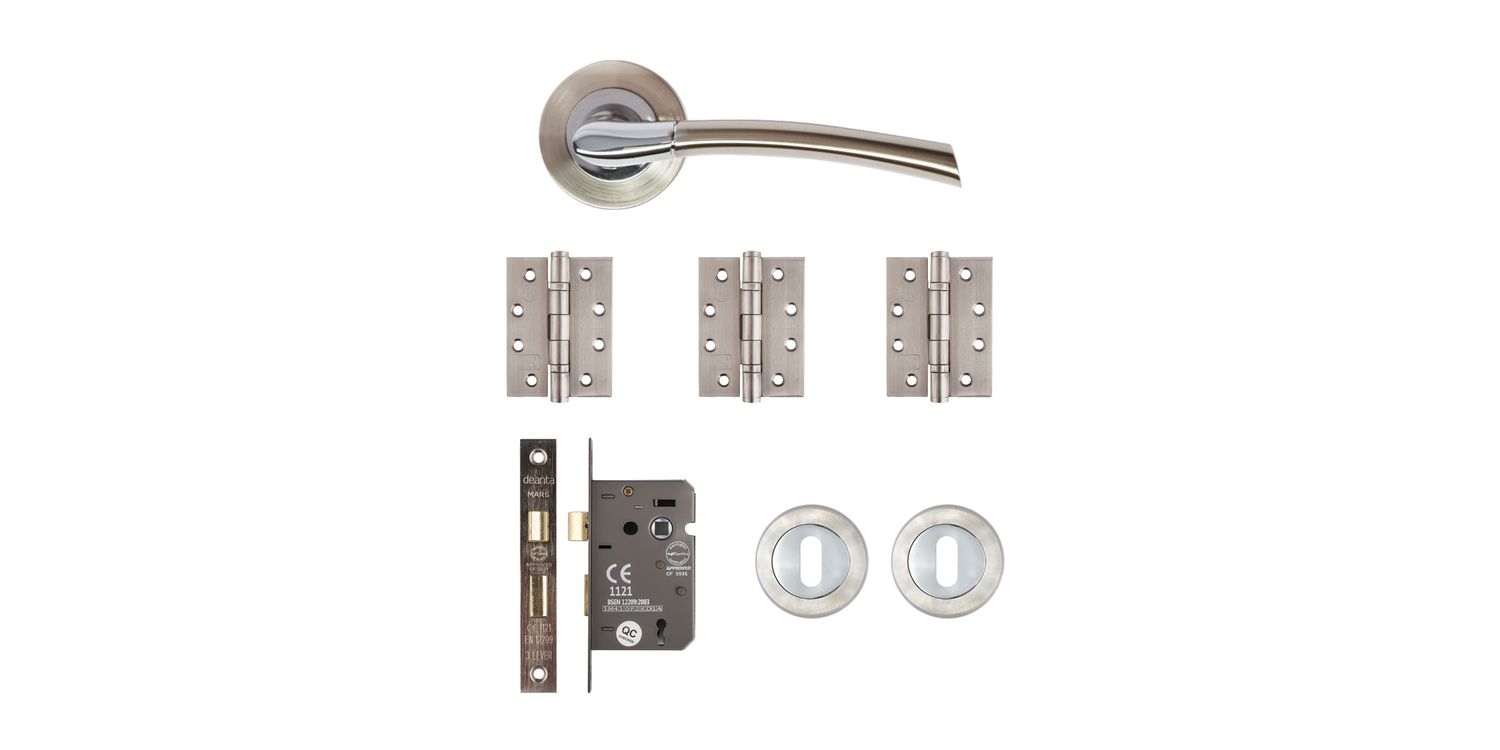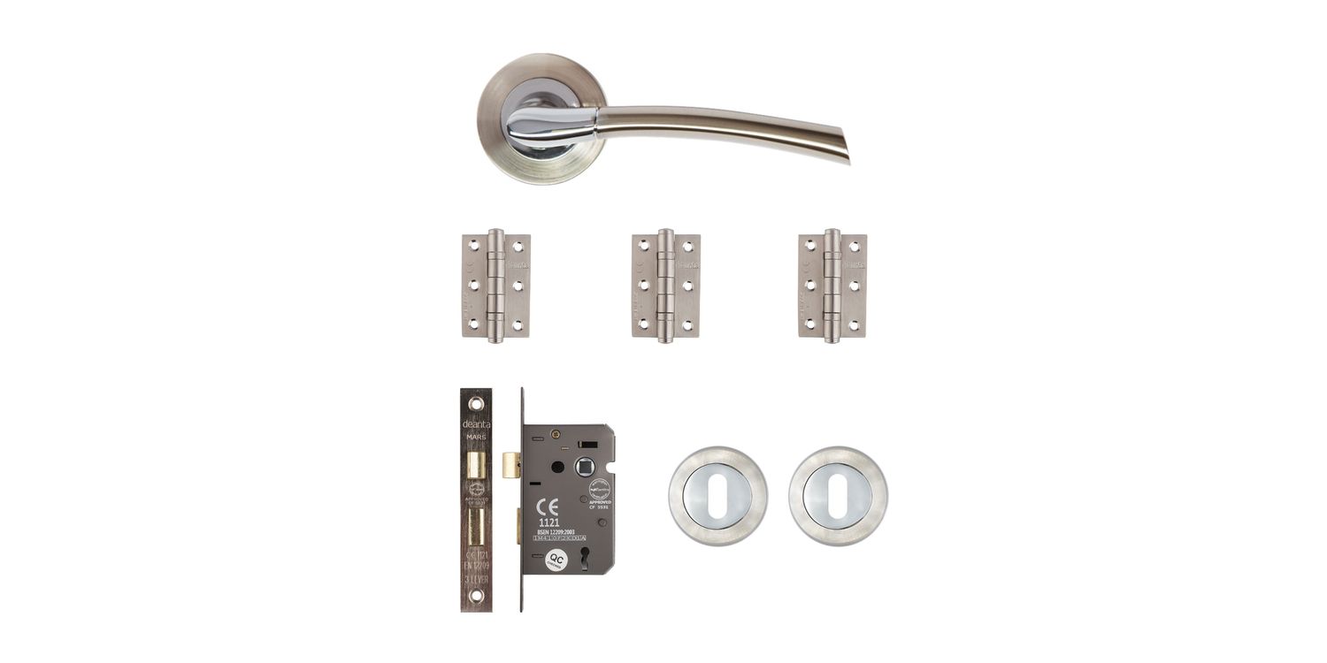 Deanta Hera Satin Nickel Chrome Mortice Door Handle Kit