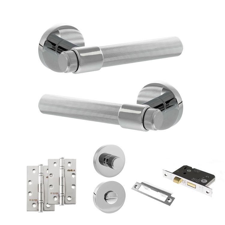For use on a toilet or bathroom door, this pack comes with a pair of handles, bathroom lock, turn & release and hinges. A stylish lever with intricate linear detailing. Finished in Antique Brass, it brings a timeless elegance to any interior space. It combines rich, warm tones with subtle aged patinas, creating a look that is both classic and Pari, meaning 'without equal', is an Italian designed range of contemporary levers. Crafted to make a bold statement, the collection features modern and eye-catching designs. Supplied with matching wood screws.10 year mechanical guarantee subject to Atlantic UK Terms & Conditions.