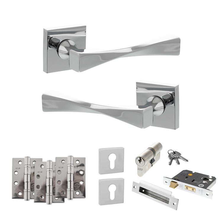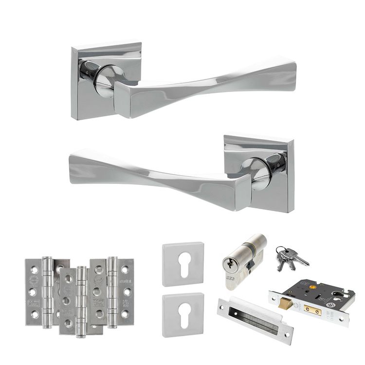 A high security option for use on internal doors you’d like to lock with a key such as offices or internal porches. It comes with a pair of handles, Euro sash lock, 5 pin Euro cylinder, 3 keys, 2 Euro escutcheons and hinges. A stunning and unique twisted lever on minimal square rose. With a sleek, modern feel and a high-gloss, mirror-like surface, the bright reflective quality of Polished Chrome creates a contemporary look. Senza Pari, meaning 'without equal', is an Italian designed range of contemporary levers. Crafted to make a bold statement, the collection features modern and eye-catching designs. Supplied with matching wood screws.10 year mechanical guarantee subject to Atlantic UK Terms & Conditions.