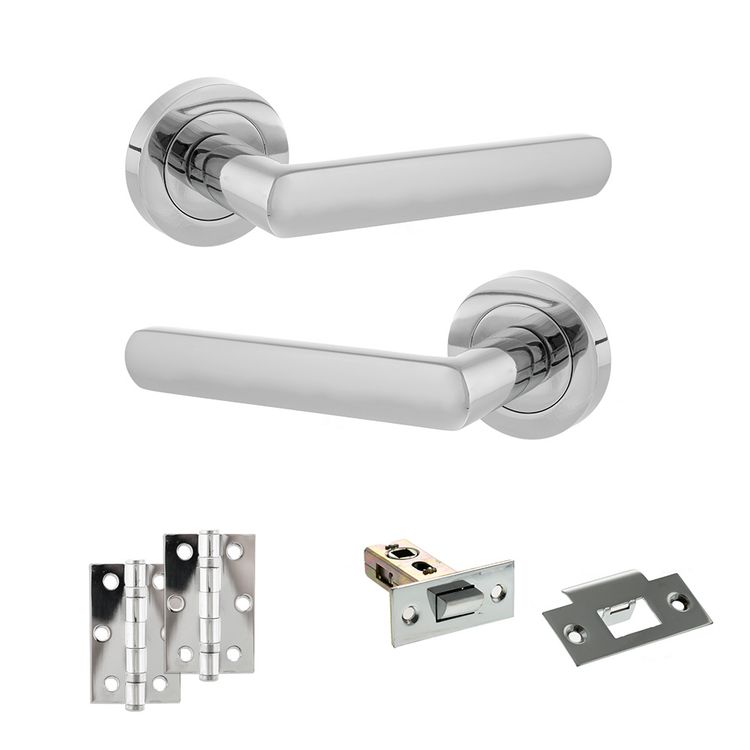 Everything needed to fit an interior door in one convenient pack. Includes a pair of designer lever handles, hinges and a latch, making it ideal for doors that do not require locking.