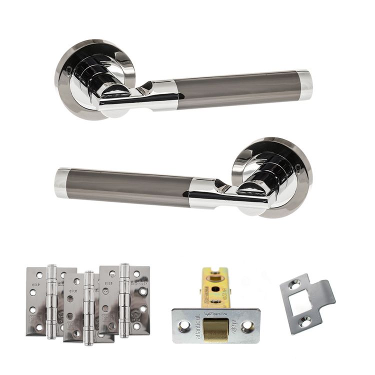 Everything needed to fit an interior door in one convenient pack. Includes a pair of designer lever handles, hinges and a latch, making it ideal for doors that do not require locking.