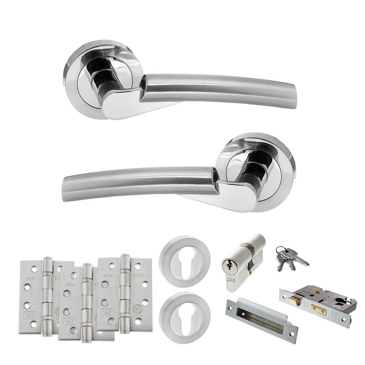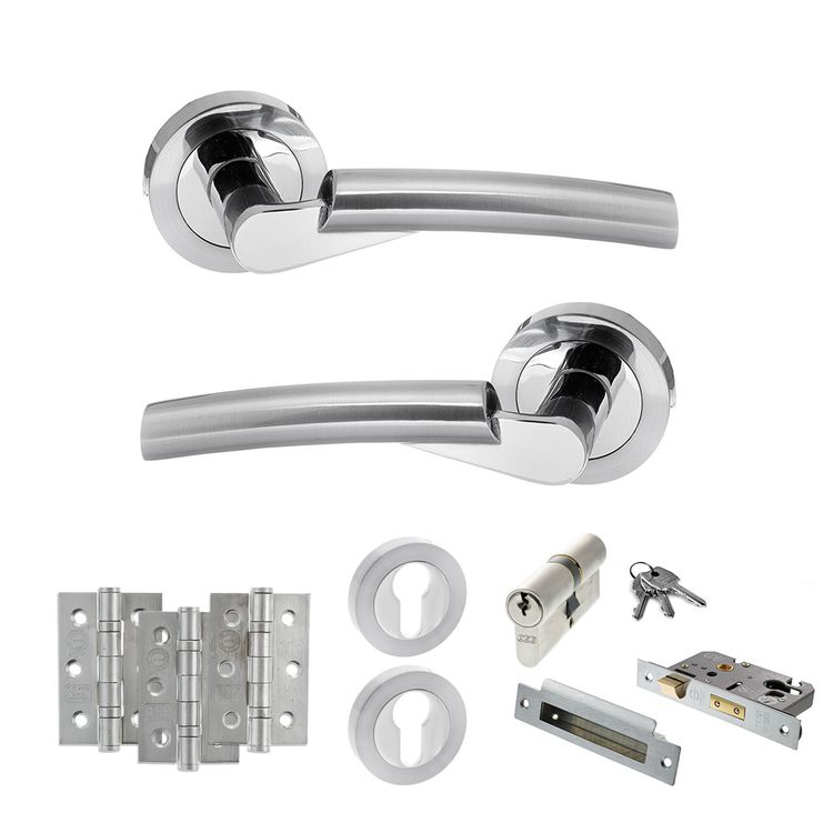 A high security option for use on internal doors you’d like to lock with a key such as offices or internal porches. It comes with a pair of handles, Euro sash lock, 5 pin Euro cylinder, 3 keys, 2 Euro escutcheons and hinges. With a gentle curved effect, our Florida has a modern, contemporary feel. A sleek combination of Satin Chrome and Polished Chrome, it's perfect for creating a modern contemporary look. Effortlessly stylish, our Status range showcases timeless contemporary designs. Supplied with matching wood screws.10 year mechanical guarantee subject to Atlantic UK Terms & Conditions.