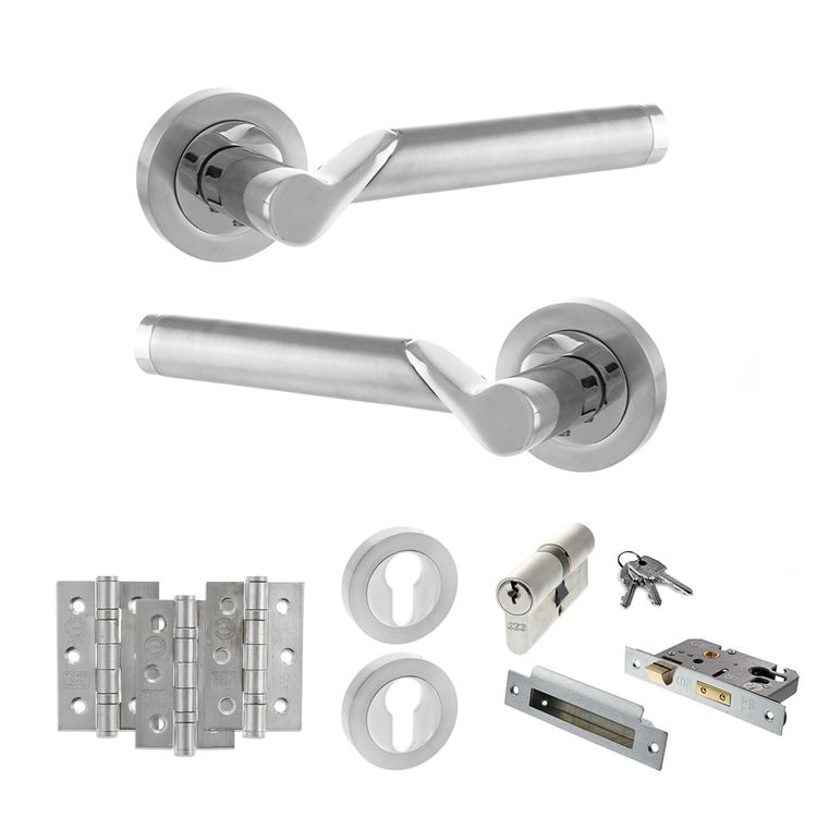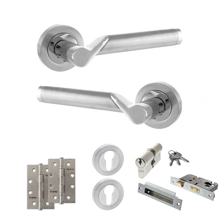 A high security option for use on internal doors you’d like to lock with a key such as offices or internal porches. It comes with a pair of handles, Euro sash lock, 5 pin Euro cylinder, 3 keys, 2 Euro escutcheons and hinges. Stylish and elegant, a perfect lever for any modern space. A sleek combination of Satin Chrome and Polished Chrome, it's perfect for creating a modern contemporary look. Effortlessly stylish, our Status range showcases timeless contemporary designs. Supplied with matching wood screws.10 year mechanical guarantee subject to Atlantic UK Terms & Conditions.