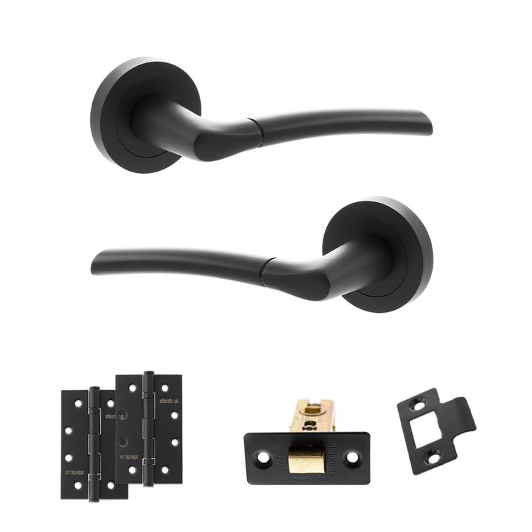 Everything needed to fit an interior door in one convenient pack. Includes a pair of door handles, hinges and a latch, making it ideal for doors that do not require locking.