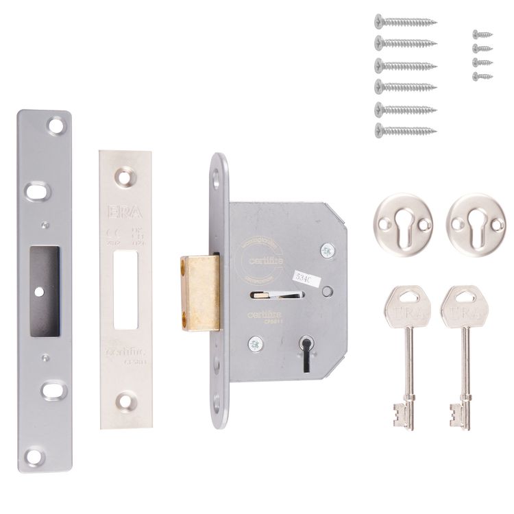 5 Lever deadlock for additional security. Perfect for replacement and new built projects. Offers long service in demanding situations and is designed to resist hacksawing as well as lock picking.