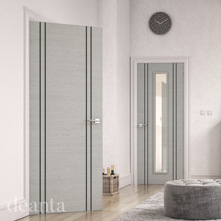 The Deanta Light Grey Ash Vertical Lined Inlay Flush FD30 Fire Door contrasts soft and muted light grey ash tones with eye-catching dark grey vertical inlays while offering 30 minutes of fire protection. Supplied fully finished and ready to hang, this premium solid core internal door will protect people and your property against the spread of fire in residential or commercial settings.