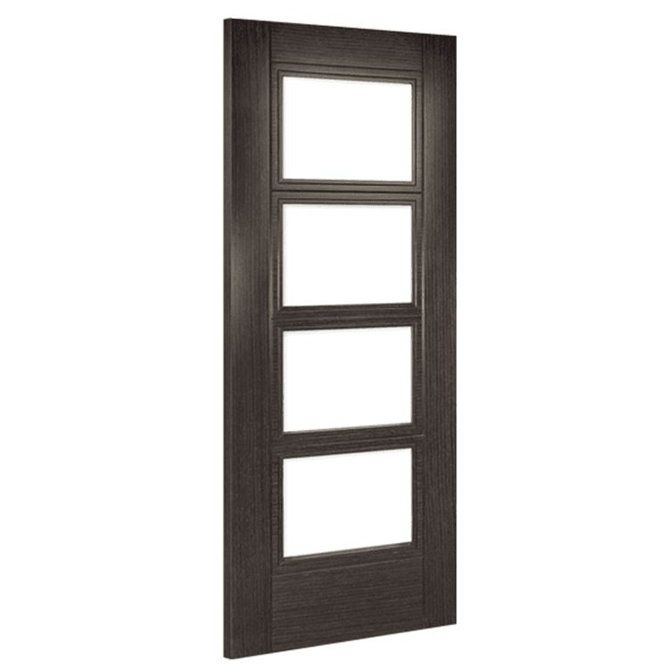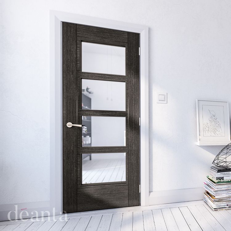 Ideally suited to a contemporary-style home, the prefinished Montreal dark grey ash door provides stunning contrast to a light decor. The glazed door features four horizontal panes of clear toughened glass, accentuating the natural grain of the ash veneer which is brought to life by the rich grey tone.