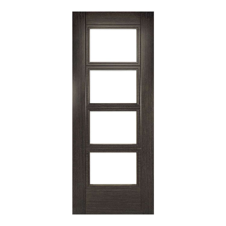 The glazed door features four horizontal panes of clear toughened glass, accentuating the natural grain of the ash veneer which is brought to life by the rich grey tone.