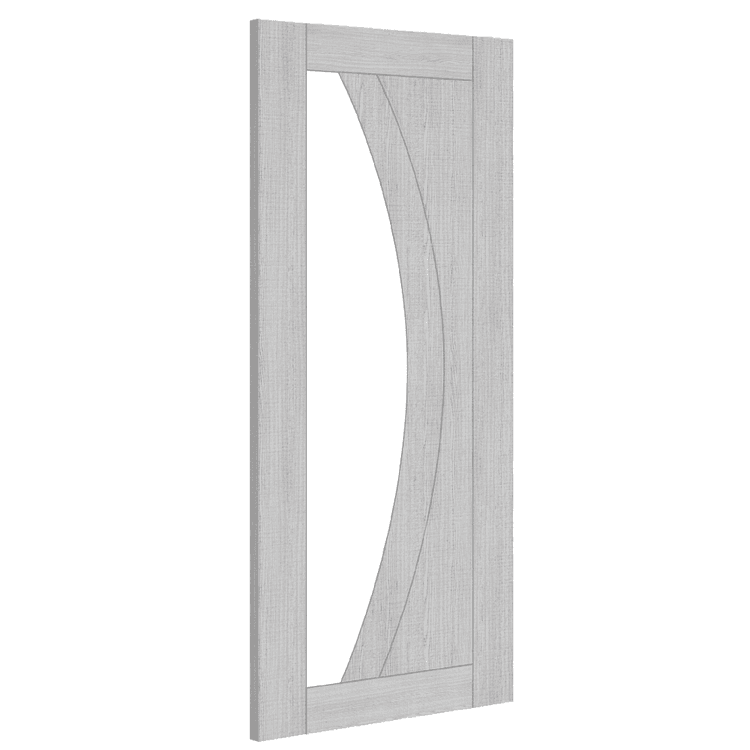 The stunning asymmetry of this design and the distinctive rippling of light grey ash veneer put this gorgeous door among the most sought-after styles in the modern home.