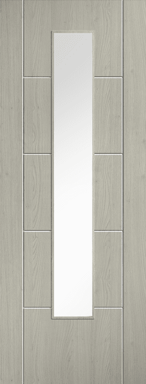 This laminate internal door, in a chic pre-finished light grey, offers an economical way to modernise your interiors. It includes a vertical clear glazed panel that enables natural light to spread across rooms, adding a modern touch to your home while fostering a revitalised, contemporary ambience.