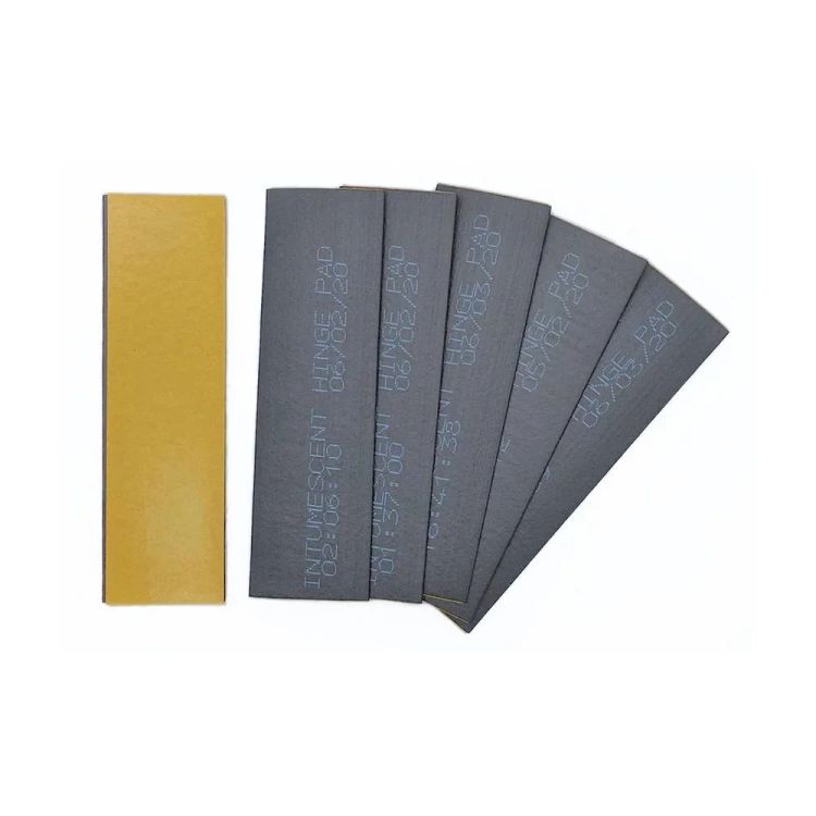 Graphite based intumescent hinge pads for 4 inch fire rated hinges.
