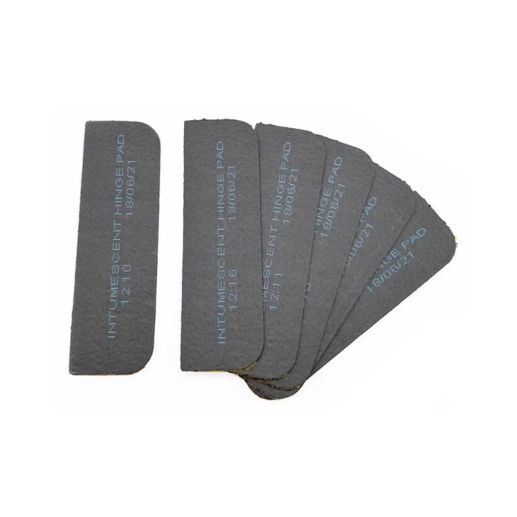 This pack contains 6 No. graphite based intumescent 100 x 30mm radius corner hinge pads in 1.0mm thickness for use with fire rated door hinges.
