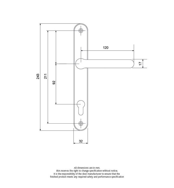 The Balmoral Inline Sprung Lever Lever Door Handle is designed to operate a Multi Point Lock with a Euro Cylinder. The handles screw fixings are located above the lever and at the bottom of the backplate to fit locks with a screw hole dimension of 211mm.