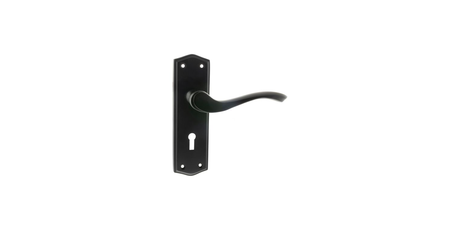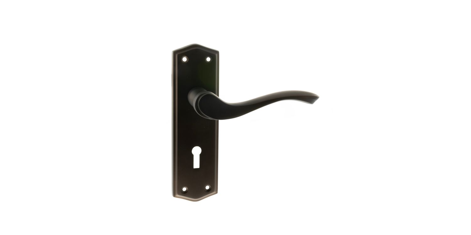 An excellent bridge between traditional and contemporary living, this door handle with key lock is on a classic backplate.