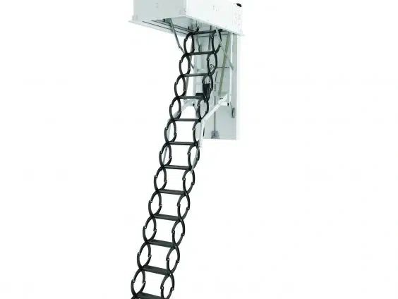 The Fakro LST Metal Scissor Loft Ladder is not only elegant and modern but also highly practical. It comes equipped with a 3.6cm thick insulated hatch as standard, a wooden box with quick-fit brackets and a hatch opening mechanism that guarantees safe folding and unfolding.