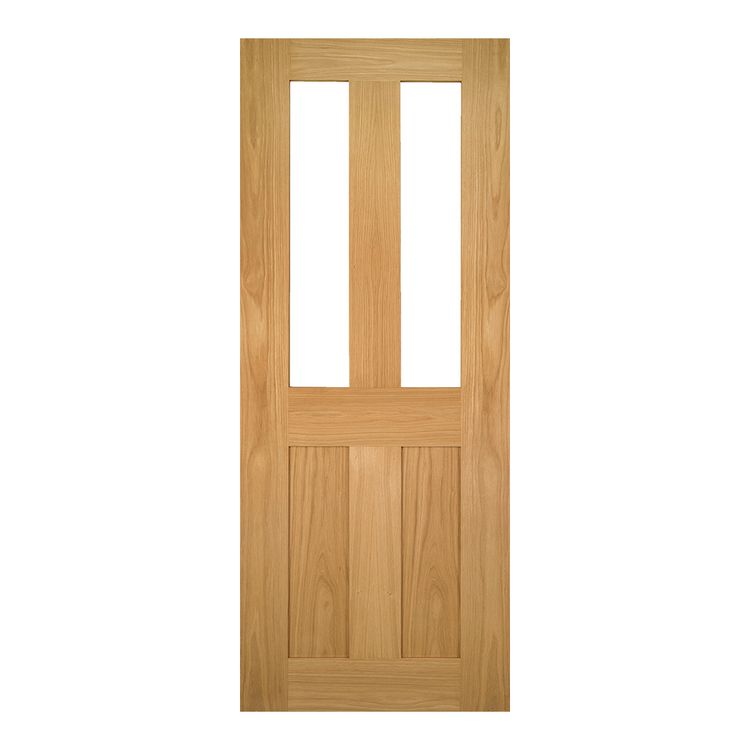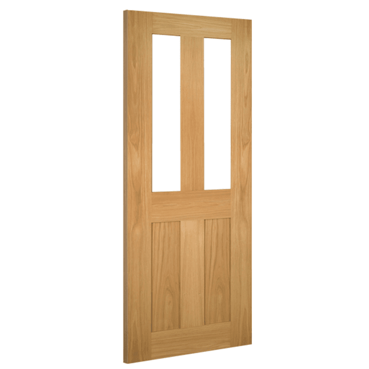 The Eton Glazed Oak door features two panes of clear toughened glass in place of the top pair of panels.