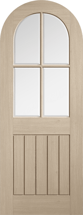 Achieve the perfect blend of traditional style and modern decor with this door! Featuring an arched top and clear bevelled glazing, it offers a distinctive look. Let natural light permeate your spaces while enriching your home's modern country interior with the Blonde Oak finish. For a seamless result, combine it with our Blonde Oak Curved Door Lining.