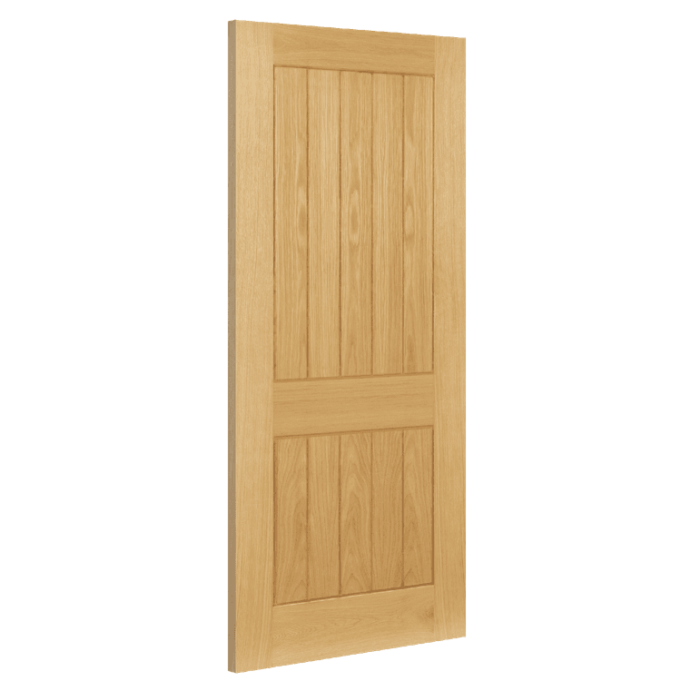 Perfectly suited to a contemporary interior style, this two-panel oak crown cut veneer door has natural grain patterns and lends a tone of rustic strength to this beautifully designed modern door.