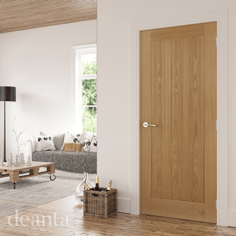 The Ely oak door is the most popular style in the UK and complements almost any setting. The vertical lines give you a rustic charm that is available in a wide range of sizes. Use hard wax oil on this unfinished oak door to emphasise the grain and promote its natural characteristics.