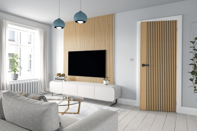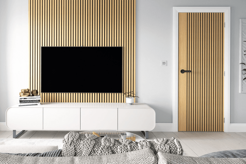Inspired by our Immerse panelling, this door celebrates texture, light and shade, bringing modern Scandinavian design to your home. Engineered with a solid fire-rated core, it ensures both structural integrity and enhanced acoustic insulation. The pre-finished oak surface means no additional staining or varnishing is required, simply fit and enjoy.
