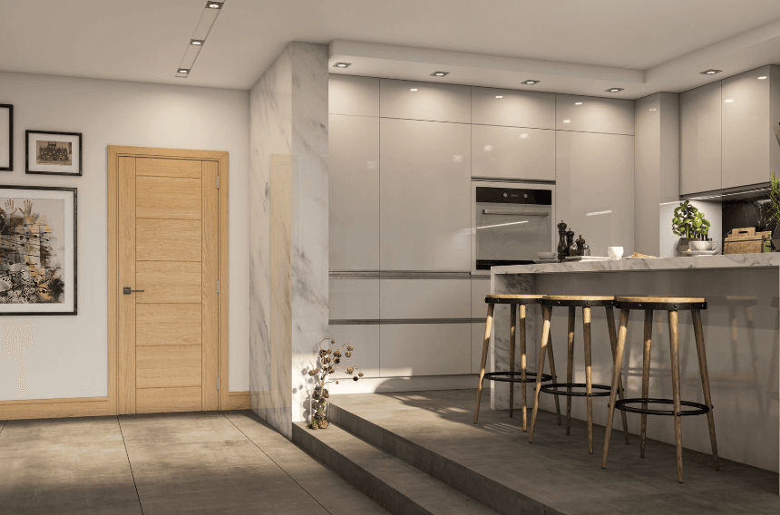 The Deanta Seville Pre-Finished Oak FD30 Fire Door is a perfect blend of sophisticated styling and essential fire safety compliance. With its elegant, modern design and solid engineered core, it is crafted to deliver both premium aesthetics and robust performance.