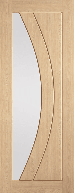The door showcases the natural grain and character of real oak. The clear glazed panels allow natural light to flow between rooms, creating a bright and open feel while maintaining defined living areas.