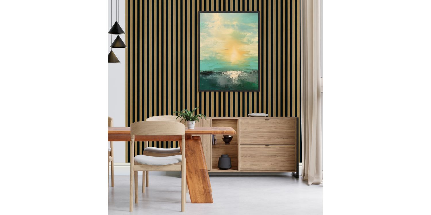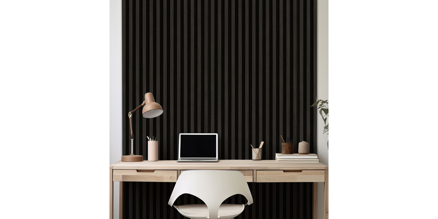 These stylish slatted wall panels offer the perfect balance of aesthetic warmth, sound control, and durable craftsmanship. Each panel features high-quality laminate slats mounted on a black recycled polyester felt backing that enhances sound absorption and reduces echo, creating a quieter, more comfortable atmosphere. Available in a range of elegant finishes, these panels deliver a contemporary, natural look with fully finished, wood-grain or textured surfaces.