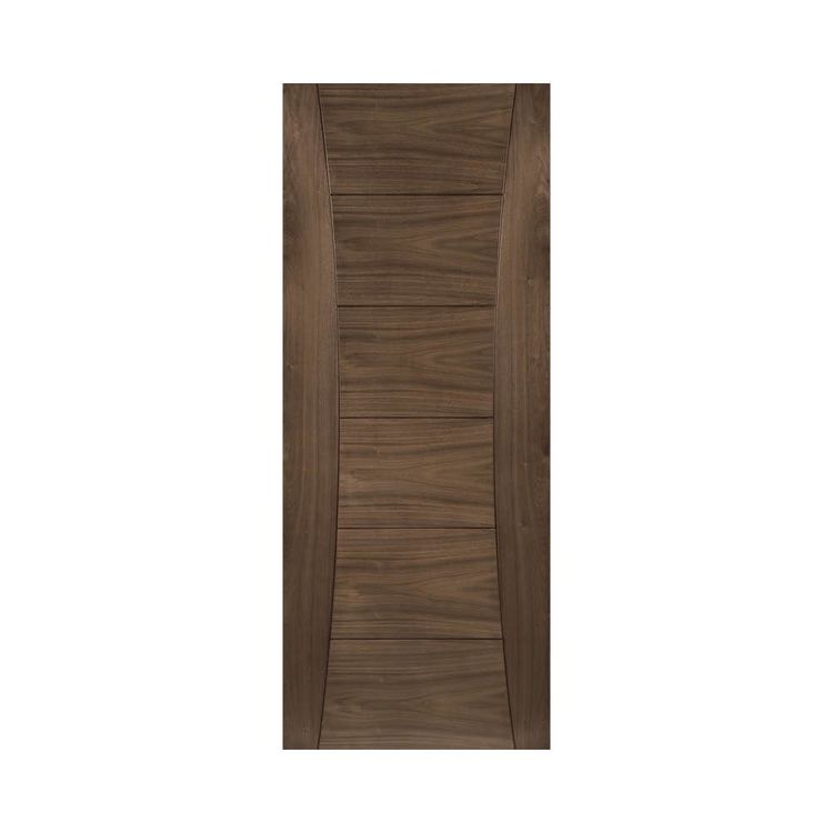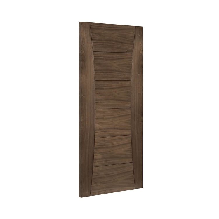 The Deanta Pamplona Curved Panel Pre-Finished Walnut FD30 Fire Door is a modern, striking and stylish veneered internal door that is tested and certified to provide 30 minutes of fire protection. Supplied fully finished and ready to hang, the Pamplona uses North American black crown cut walnut veneers with curved side panels and ladder-style central panels to accentuate the appeal of the vertical and horizontal wood grain patterns.