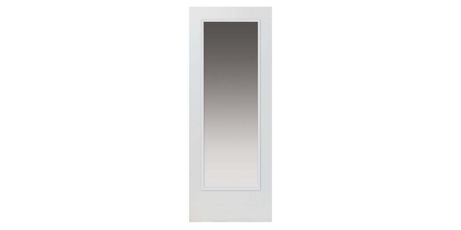 White primed glazed fire door with full glass panel.