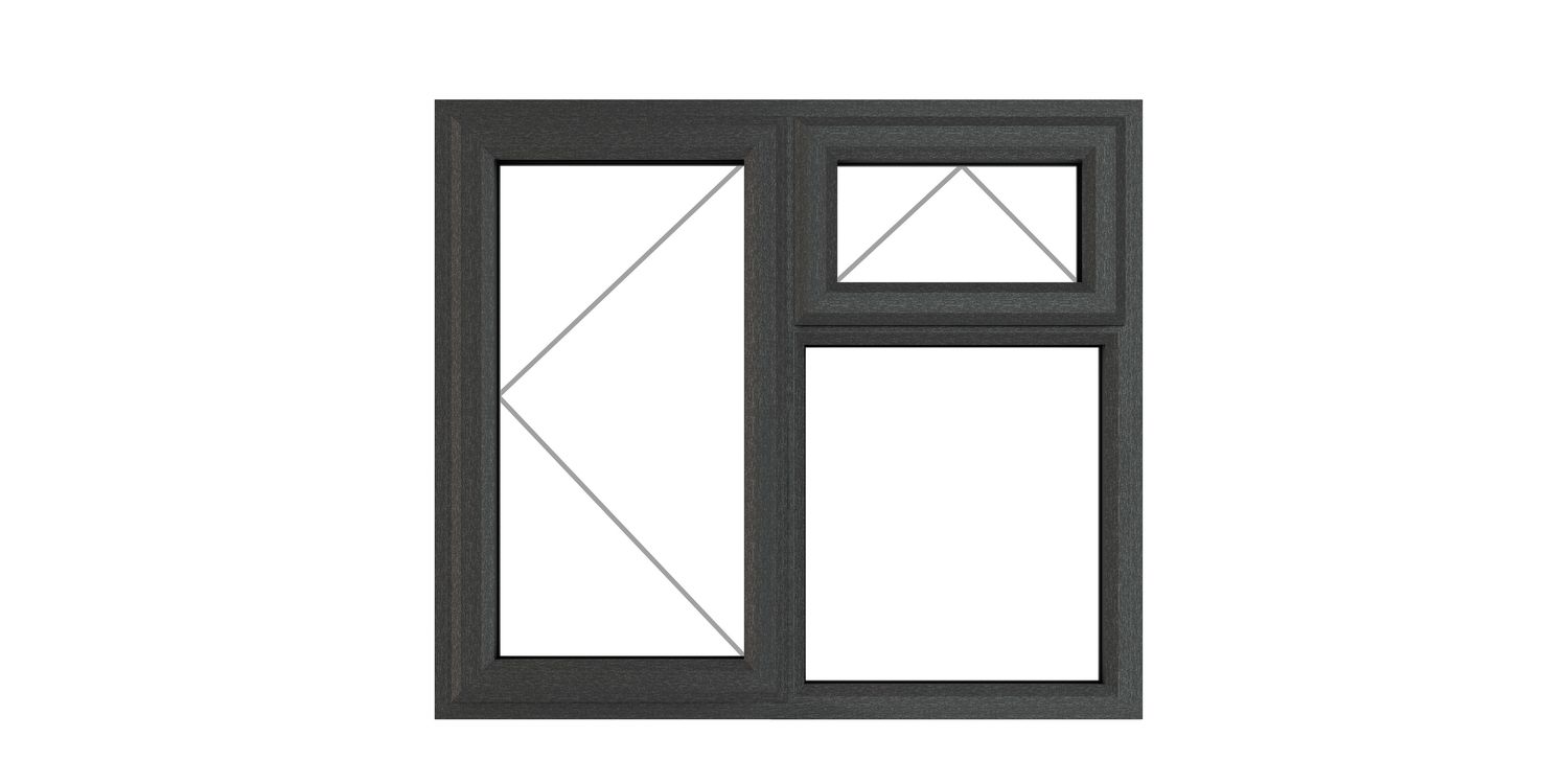 The Crystal uPVC Left-Hand Side Hung Top-Opening Over Fixed Double Glazed Window is a sleek and practical glazing solution, ideal for modern homes, bathrooms, offices and residential developments. Featuring a contemporary light grey grained uPVC finish (RAL 7016) with a clean white internal face, this casement window offers a stylish contrast while maintaining excellent thermal performance.